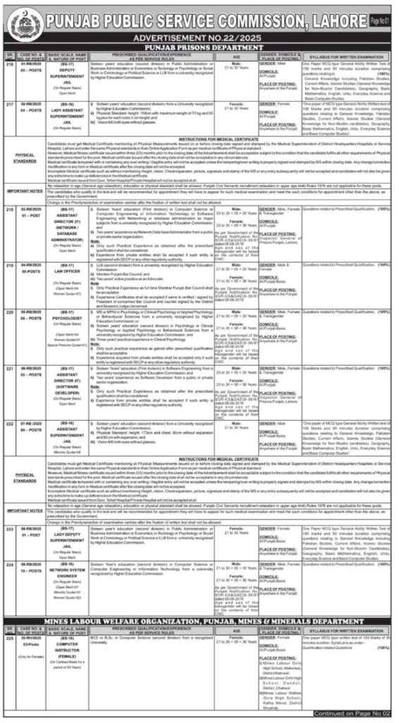 Below we have mentioned the complete details about post name, BPS scale, no of posts, gender specification for each post, minimum age requirement and the required qualification that will give you complete detail and idea to apply for Punjab Prison Department Jobs 2025.